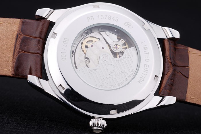 Volver: Acero inoxidable pulido atornillada de nuevo con la mecánica que revelan transparencia en el centro y la edición limitada engravings