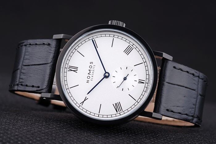 Bracelet de acero inoxidable: El calor en relieve correa de piel de cocodrilo negro Nomos Glashütte con NOMOS iones grabadas -plated Longitud de gancho hebilla clasp