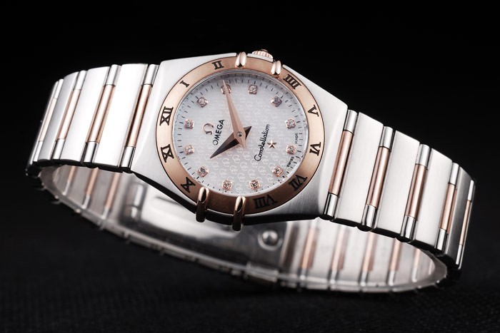 Case: acero inoxidable cepillado y oro rosa eslabón de la cadena de pulsera con cierre oculto y el logotipo de Omega en top