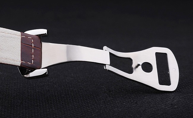 Bracelet de acero inoxidable: correa de piel de cocodrilo marrón con costuras blancas y Omega logotipo grabado de acero inoxidable gancho hebilla clasp