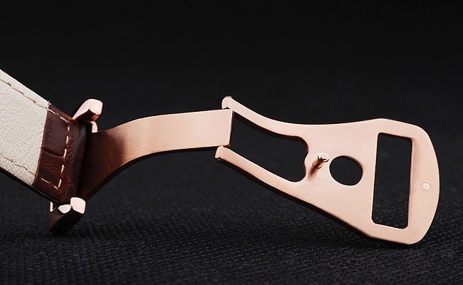 Bracelet oro amarillo: correa de piel de cocodrilo marrón con costuras blancas y el logotipo grabado Omega de oro amarillo de gancho hebilla clasp