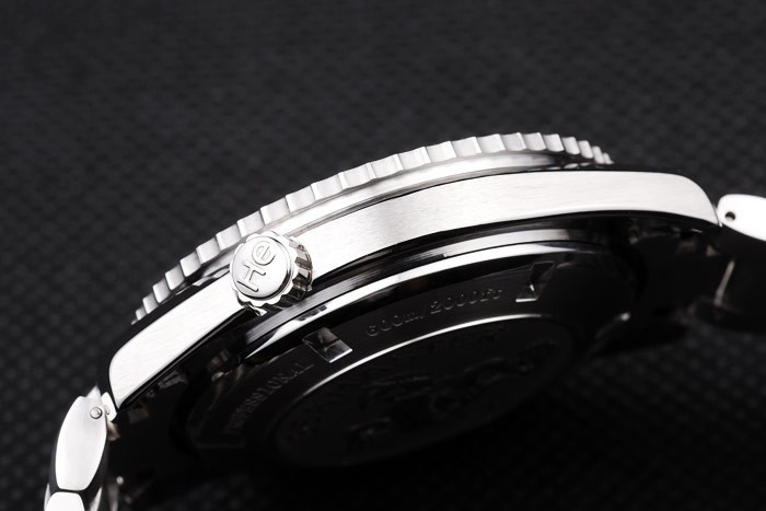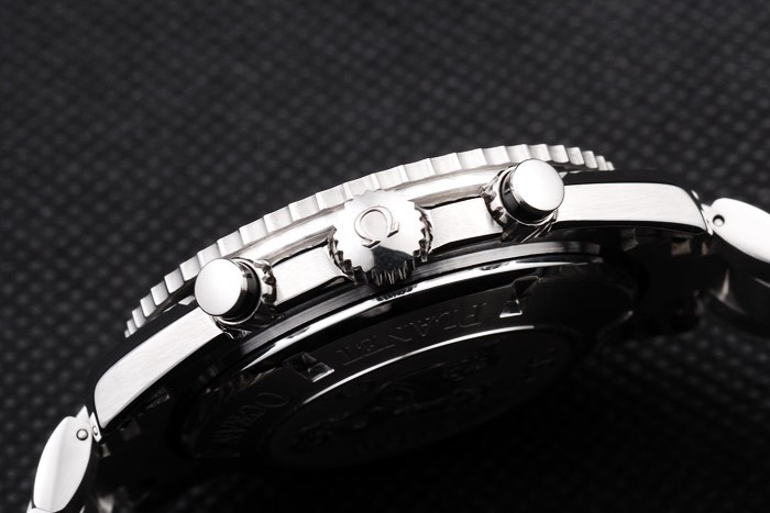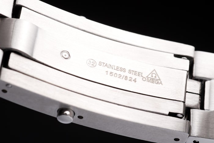 Crown: acero inoxidable cepillado cutwork corona con logo Omega además de una corona adicional en el frente superior corner