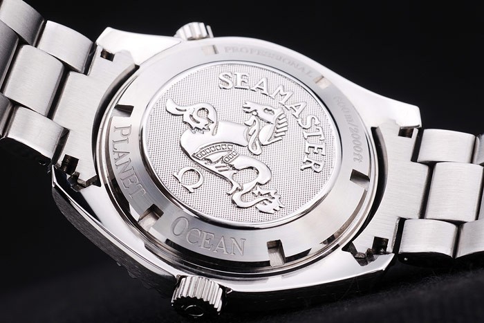 Volver: Acero inoxidable complemento en la parte trasera con el logotipo y el Seamaster engravings