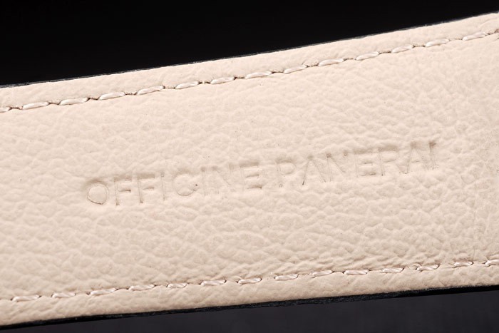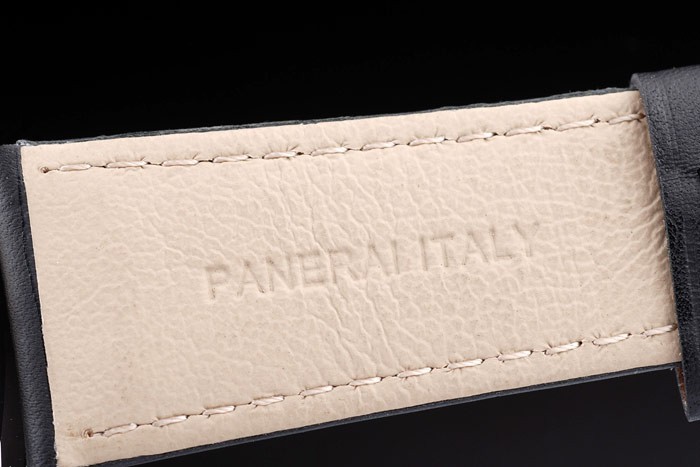 Bracelet de acero inoxidable: correa de cuero Negro con costuras de color blanco y en relieve de calor sello de Officine Panerai Italia y acero inoxidable cepillado de gancho hebilla de cierre con Panerai engraving