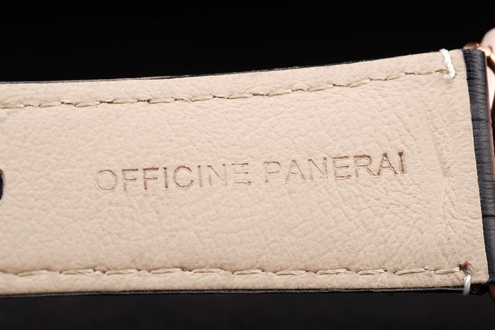 Bracelet: correa de piel de cocodrilo negro con costuras de color blanco y en relieve de calor sello de Officine Panerai Italia y rosa de 18 quilates chapado en oro broche de gancho de la hebilla con Panerai engraving