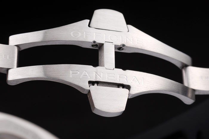 Bracelet de acero inoxidable: Panerai Italia en relieve correa de caucho negro con acero inoxidable cepillado Officine Panerai grabado plegable en gancho clasp