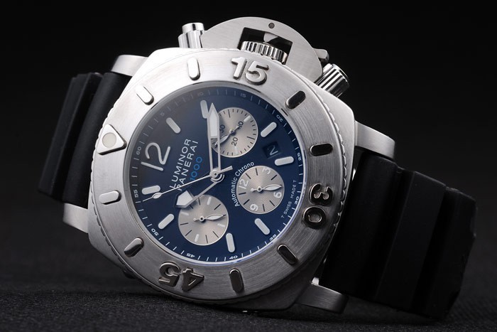 Bracelet acero inoxidable cepillado: correa de caucho Negro con correa de Officine Panerai en relieve calor y cepillado de acero inoxidable plegado hacia dentro clasp