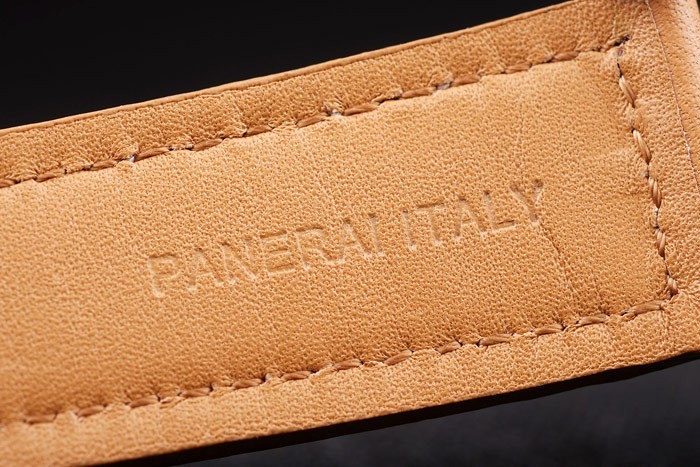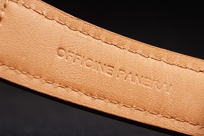 Bracelet de acero inoxidable: correa de cuero marrón claro con relieve de calor sello de Officine Panerai Italia y cepillado gancho de acero inoxidable corchete -buckle con Panerai engraving
