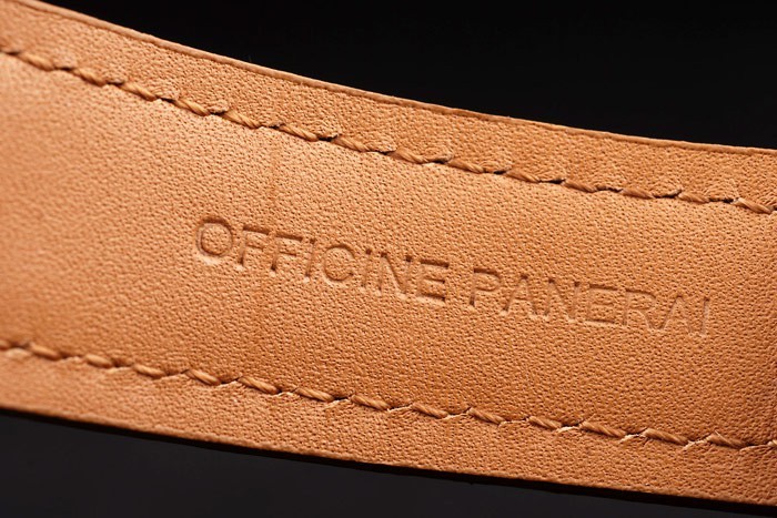 Bracelet de acero inoxidable: correa de cuero marrón claro con relieve de calor sello de Officine Panerai Italia y cepillado gancho de acero inoxidable corchete -buckle con Panerai engraving
