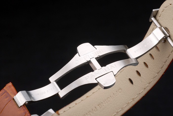 Bracelet acero inoxidable Correa de piel marrón con relieve de calor sello de Officine Panerai Italia y cepillado de acero plegable en acero gancho broche con Panerai engraving