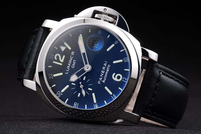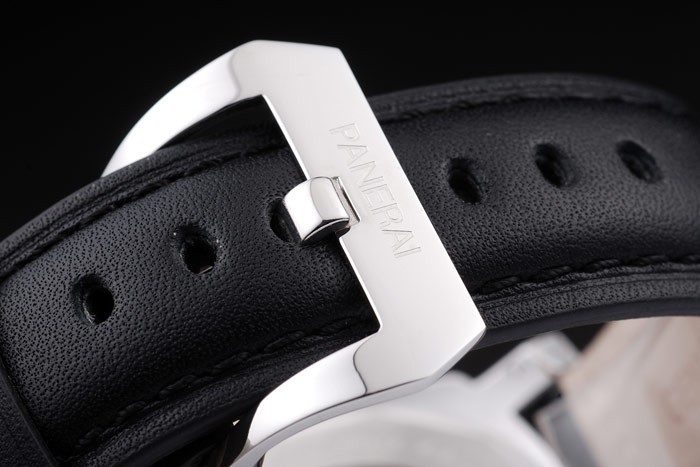 Bracelet de acero inoxidable: correa de cuero Negro con relieve de calor sello Luminor Panerai y pulido de acero inoxidable gancho hebilla de cierre de con Panerai engraving