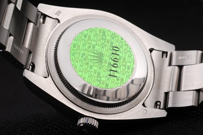Volver: Acero inoxidable empuje en caso de vuelta con el verde Rolex logo stamp