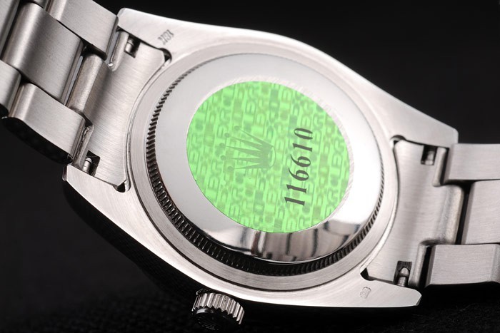 Volver: Acero inoxidable empuje en caso de vuelta con el verde Rolex logo stamp