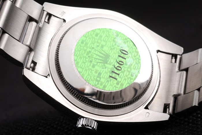 Volver: Acero inoxidable empuje en caso de vuelta con el verde Rolex logo stamp