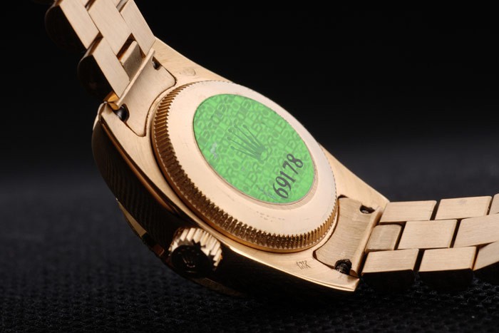 Volver: oro amarillo de 18 quilates chapado en caso de empuje de acero inoxidable de nuevo con el verde Rolex logo stamp