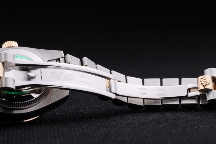 Bracelet de acero inoxidable: dos tonos pulsera de triple enlace en acero inoxidable pulido y oro amarillo de 18K chapado en acero con el grabado Rolex oculta broche de mostrar la longitud Rolex logo