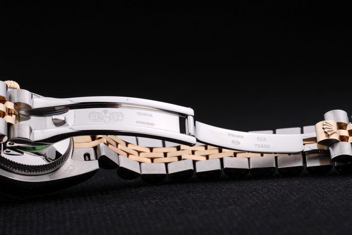 Bracelet de acero inoxidable: dos tonos pulsera de triple enlace en acero inoxidable pulido y oro amarillo de 18K chapado en acero con el grabado Rolex oculta broche de mostrar la longitud Rolex logo