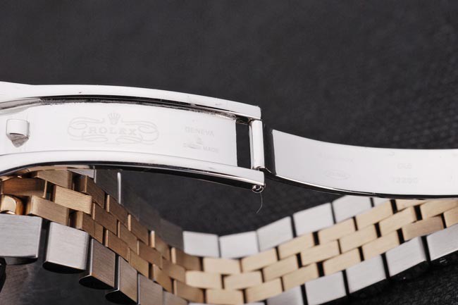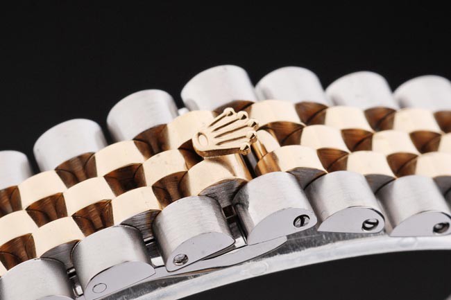 Color japonesa: acero inoxidable cepillado y amarillo cadena de eslabones de oro con el doblez sobre el corchete y Rolex corona engraving
