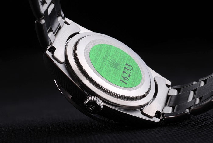 Volver: Acero inoxidable de empuje en el caso de vuelta con el logotipo verde Rolex stamp