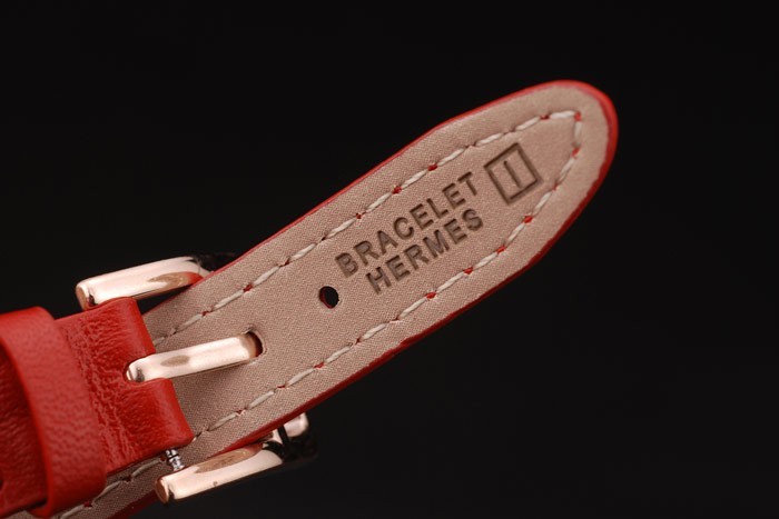 Bracelet: correa de cuero roja alargada con sello en seco de calor pulsera de Hermes y Hermes grabado rosas -Gold chapado en gancho hebilla de cierre de