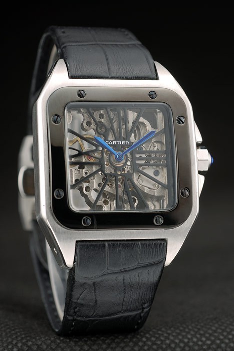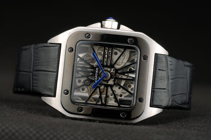 Bracelet: calor correa de piel de cocodrilo negro en relieve Cartier de acero inoxidable cepillado complemento broche mediante botón pulsador de la longitud side