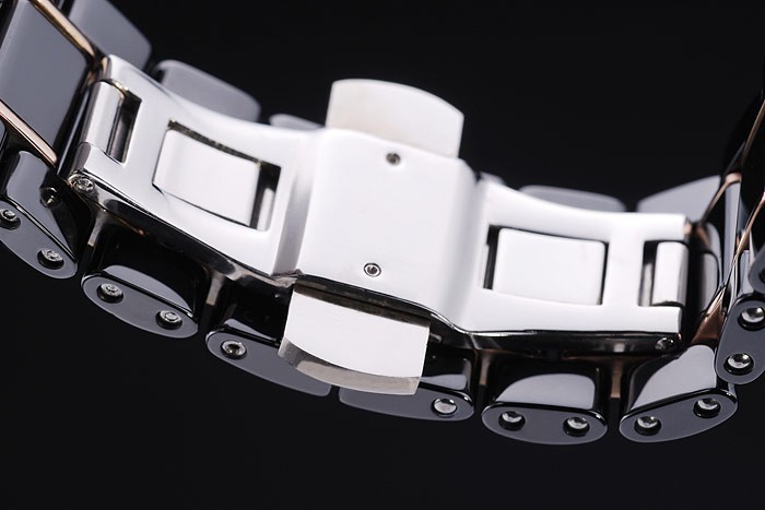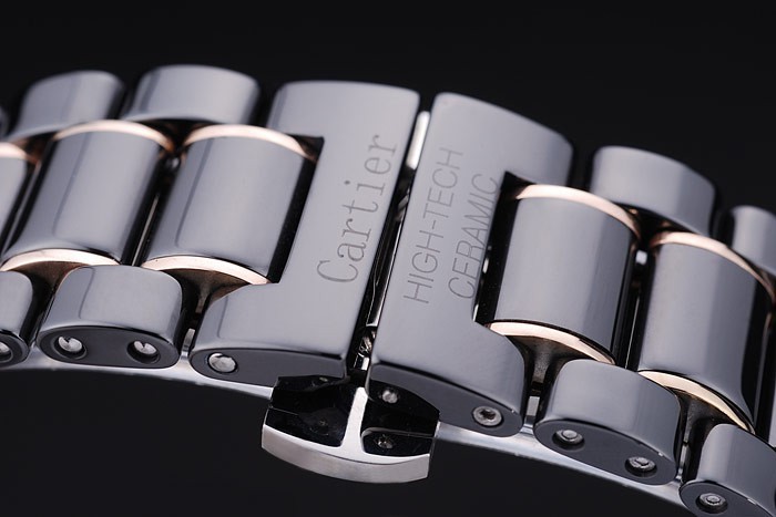 Bracelet cerámica Negro: Negro de cerámica y oro rosa enlace de pulsera con Cartier de alta tecnología cerámica clasp