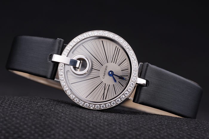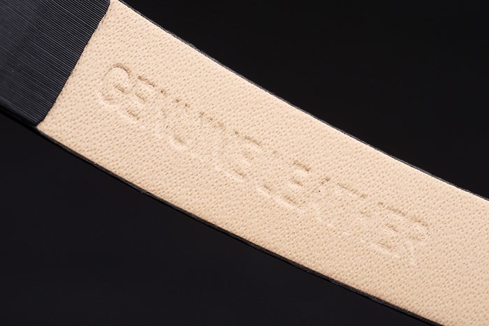 Bracelet de acero inoxidable: El calor en relieve correa de cuero negro con textura de Cartier Cartier inscrito pulida de acero inoxidable plegado hacia dentro flip clasp
