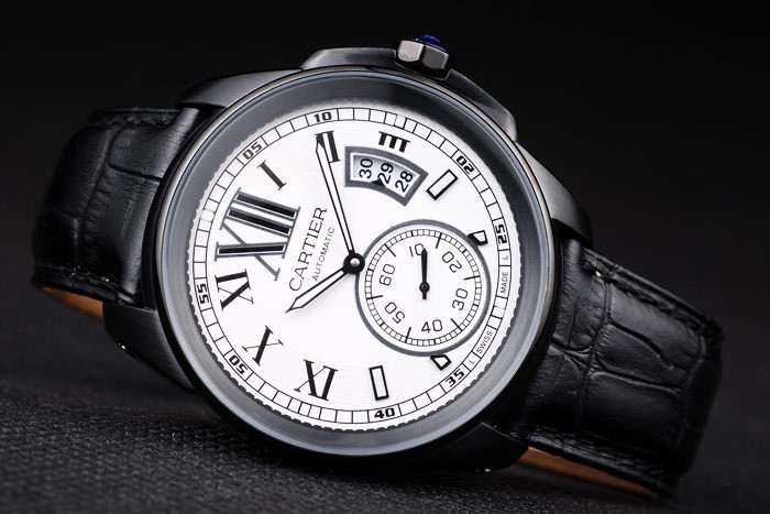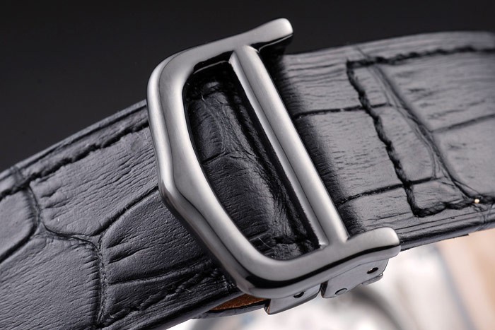 Bracelet: Calor en relieve Cartier estampada correa de piel de cocodrilo negro con el ion-plateado Longitud clasp