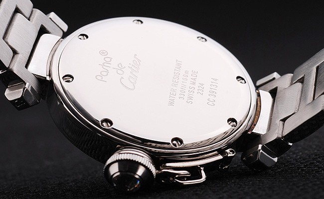 Volver: Acero inoxidable atornillada caso de Cartier inscriptions