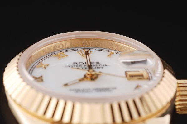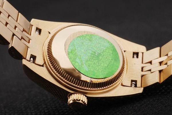 1Back: Empuje hacia atrás en oro amarillo de 18 quilates con la etiqueta engomada Rolex verde y markings
