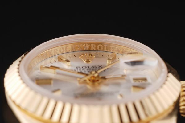 1Back: Empuje hacia atrás en oro amarillo de 18 quilates con la etiqueta engomada Rolex verde y markings