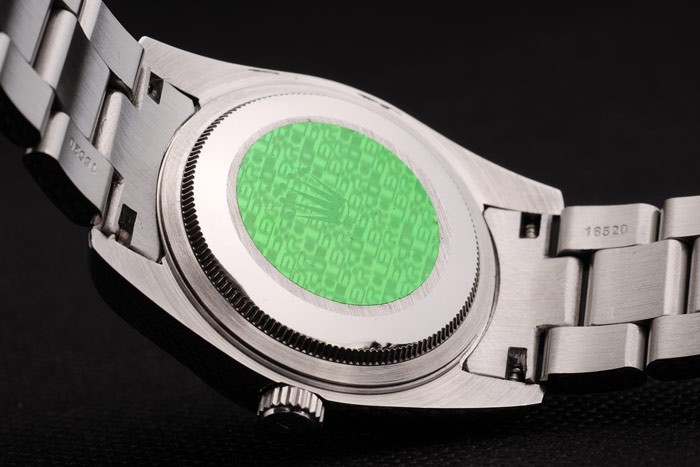 Back: Empuje en acero inoxidable de nuevo con la etiqueta engomada verde Rolex y markings