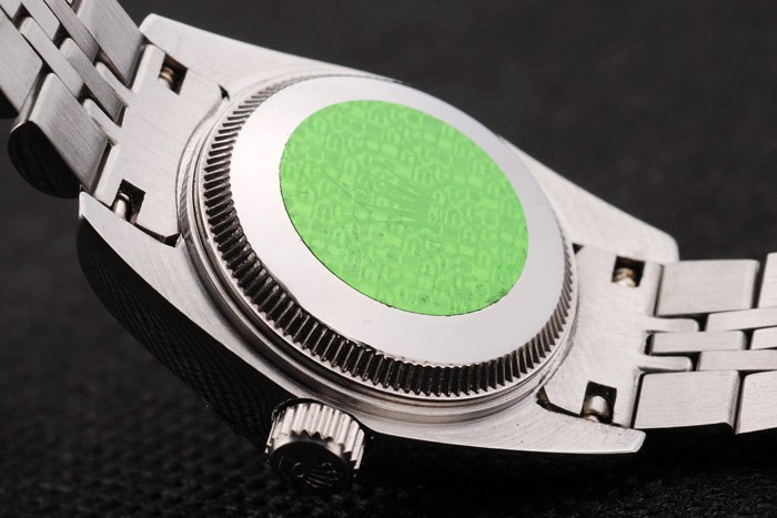 1Back: Empuje en acero inoxidable de nuevo con la etiqueta engomada Rolex verde y markings