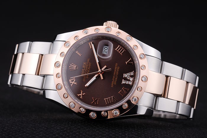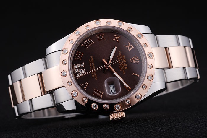 Crown: rosa de 18 quilates chapado en oro de la corona calado con logotipo de Rolex engraving