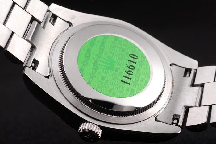 Volver: Acero inoxidable empuje en caso de vuelta con el verde Rolex logo stamp