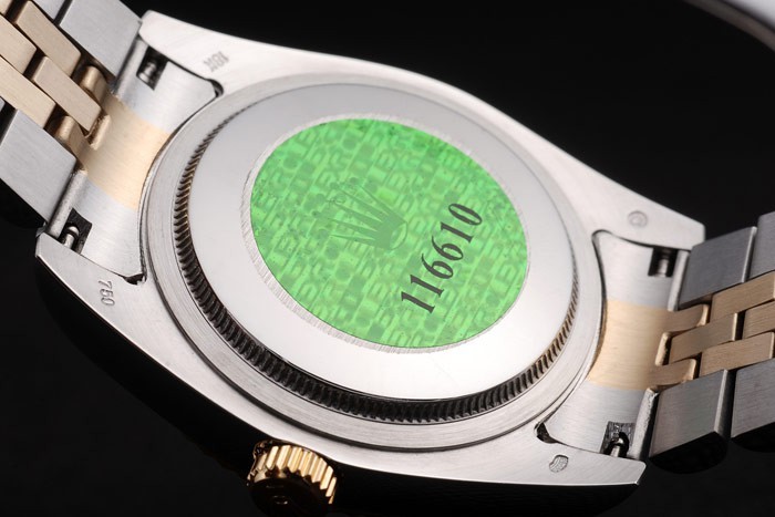 Volver: Acero inoxidable empuje en caso de vuelta con el verde Rolex logo stamp