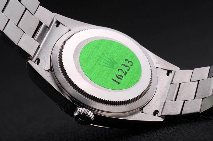 Volver: Acero inoxidable empuje en caso de vuelta con el verde Rolex logo stamp