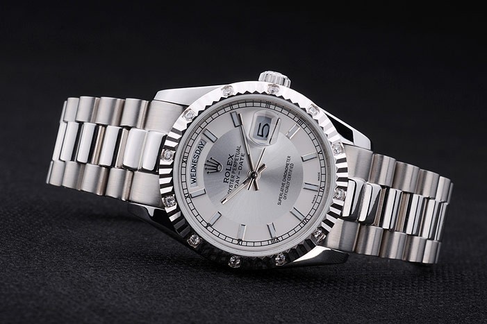 Bracelet: cepillado y pulido pulsera de acero inoxidable con grabado Rolex cierre oculto que muestra la longitud Rolex logo