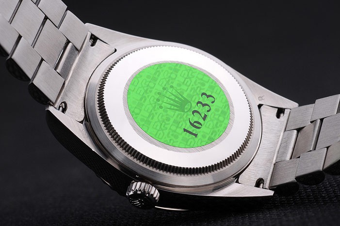 Volver: Acero inoxidable empuje en caso de vuelta con el verde Rolex logo stamp