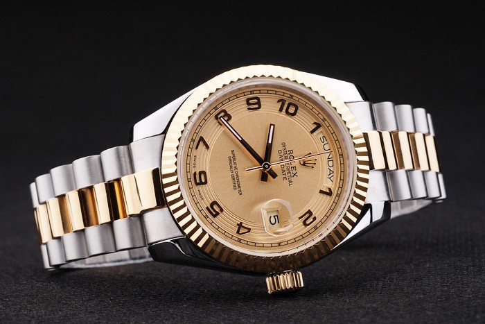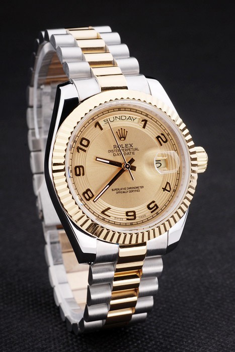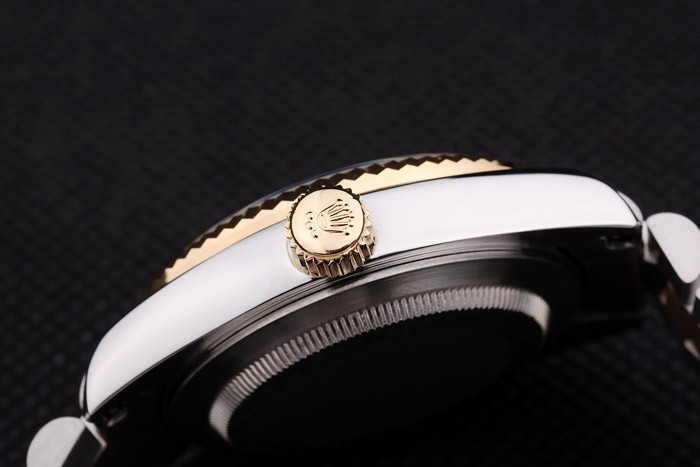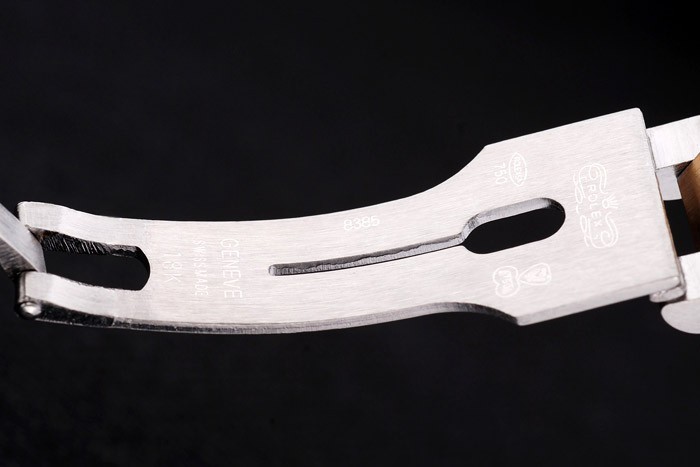Case japonesa: acero inoxidable cepillado y amarillo cadena de eslabones de oro con el doblez sobre el corchete y Rolex corona engraving