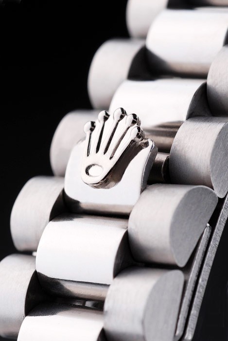 Bracelet acero inoxidable cepillado y pulido brazalete de eslabones de acero inoxidable con grabado Rolex cierre oculto que muestra la longitud Rolex logo