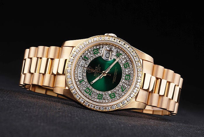 Volver: oro amarillo de 18 quilates chapado en caso de empuje de acero inoxidable de nuevo con el verde Rolex logo stamp