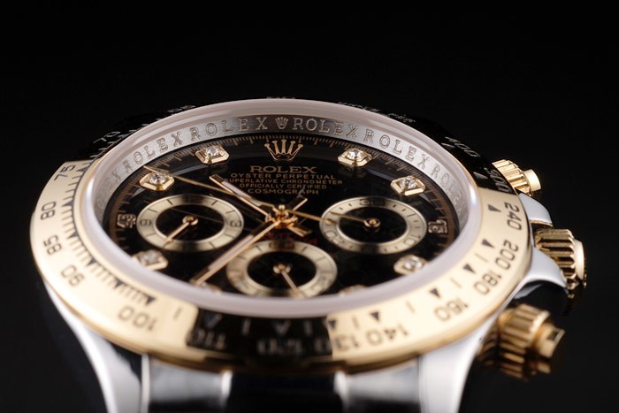 Crown: 18k corona amarilla calado de oro con el logotipo de Rolex y coronas más pequeñas a cada lado de it