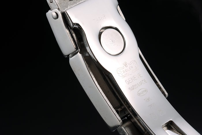 Crown: acero inoxidable pulido corona de calado con el logotipo de Rolex y dos botones pulsadores cutwork coronas más pequeñas a cada lado de it