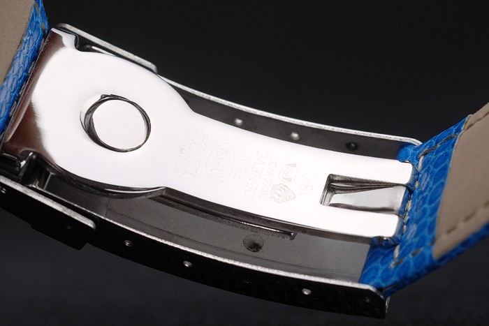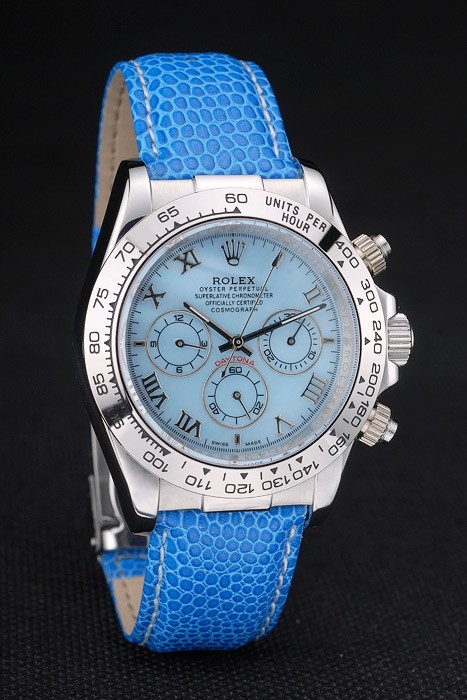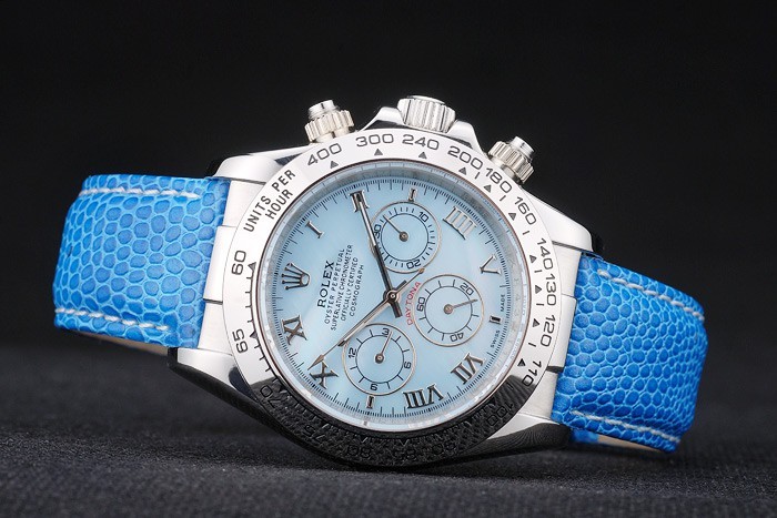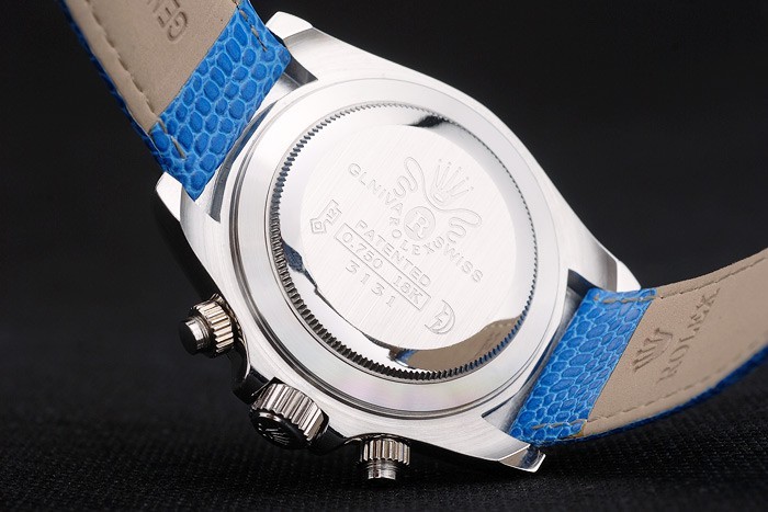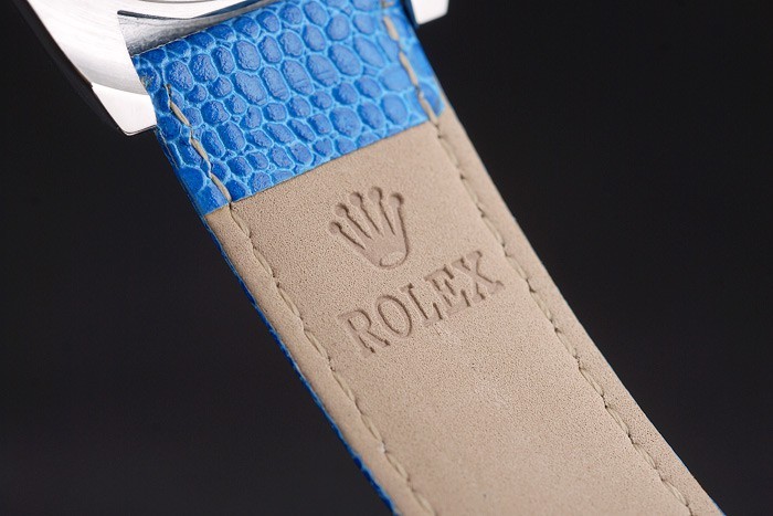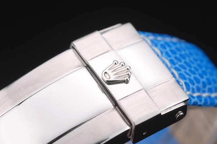 Bracelet de acero inoxidable: correa de piel de serpiente azul con Rolex y el logotipo grabado y cierre desplegable de acero inoxidable donde se presentan Rolex logo