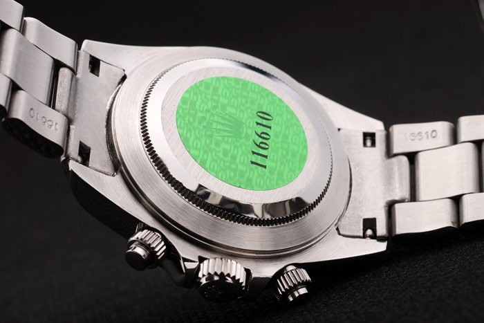 Back: Empuje en acero inoxidable de nuevo con la etiqueta engomada Rolex verde y markings