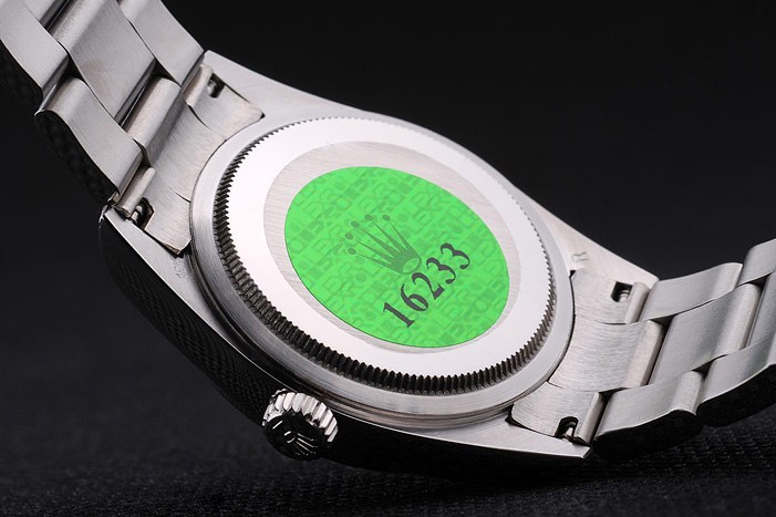 Volver: Acero inoxidable empuje en caso de vuelta con el verde de Rolex grabado stamp