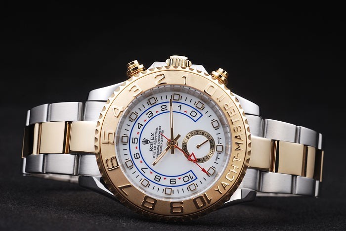 Bezel: oro plateado bisel cutwork unidireccional con 1 a 10 marcas y Yacht Master grabado en un azul Tipo esmaltado background