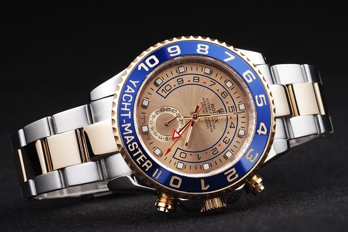 Bezel: oro plateado bisel cutwork unidireccional con 1 a 10 marcas y Yacht Master grabado en un azul Tipo esmaltado background