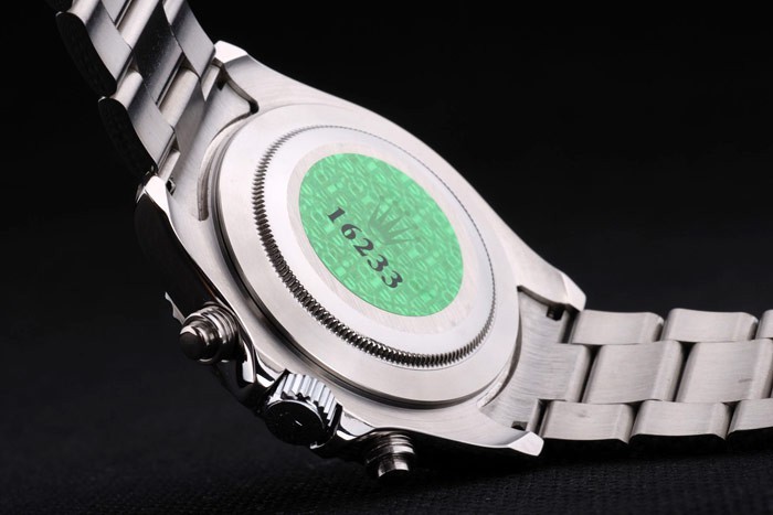 Volver: Acero inoxidable empuje en caso de vuelta con el verde de Rolex grabado stamp